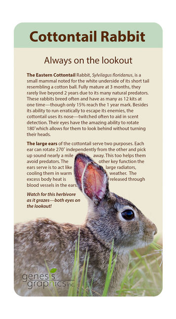 Our clever mounting options (like backer plates or 45° angle brackets) mean no screws or washers clutter your view. Every inch of these 6"x11" signs is packed with vibrant photos and engaging facts.